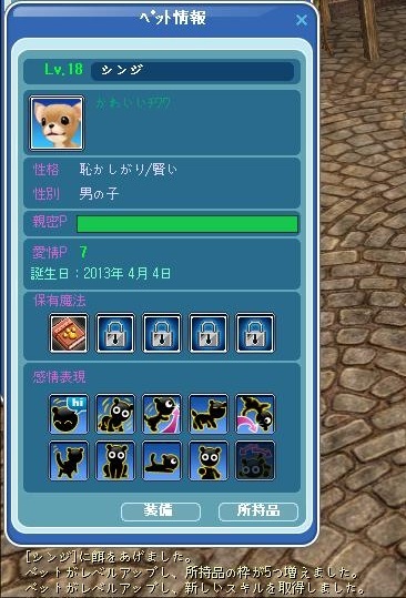 (耐久度7日、修理不可、取引不可、制限レベル20、経験値20%)