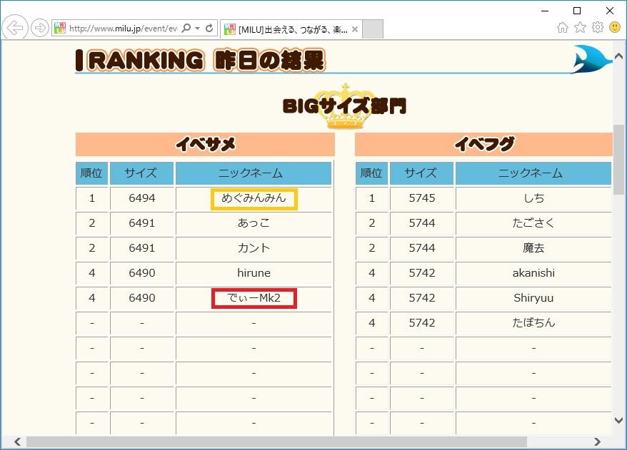 何位だったのか気になったのでイベ王ランキングを見たらBIGサイズ部門4位に入賞しておりましたぁ✌('ω'✌ )三✌('ω')✌三( ✌'ω')✌