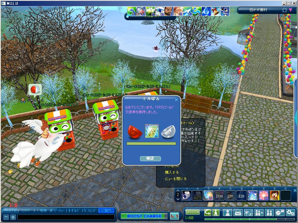 ミルポンで100万Gでるんだねー(゜ロ゜ノ)ノおめでとう!
