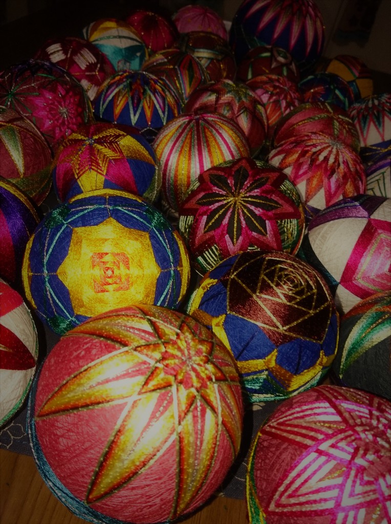 肩が痛くても遊べるように、ハハから教えてもらった手鞠をちまちまとこしらえてみました。