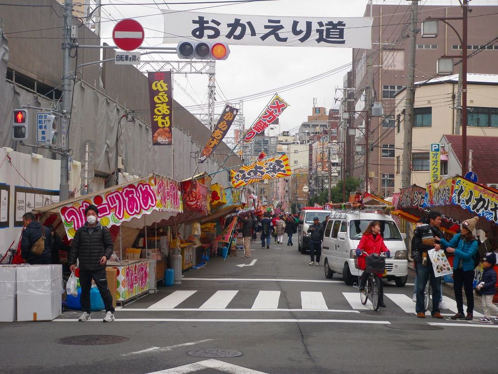 あとは、沿道の露店周りでもしてと思いましたが、業者の方々も漸く準備を始めたところって感じで、簡単なものかゲームや飴等しか並んでおらず観て周ったのみでした・・・ちなみに、以前の日記で大坂のもう1つ(ホーボーさんお薦めの)「堀川戎」の方はコンな感じです♪過去日記参照 → コチラ https://www.milu.jp/popup_inc/diary/1655348/q6uenaWgチョッチだけど、周辺の露店規模は道路を3日間規制して通行止めにするエリアがでかいので、「今宮戎」に行く人が多いみたい・・・