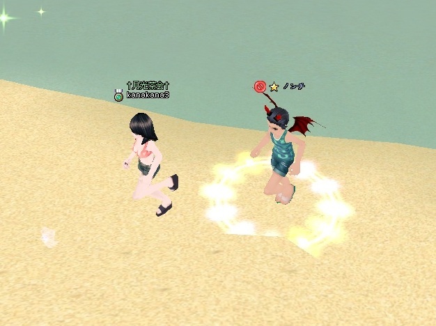 水着で浜辺で追いかけっこ~w