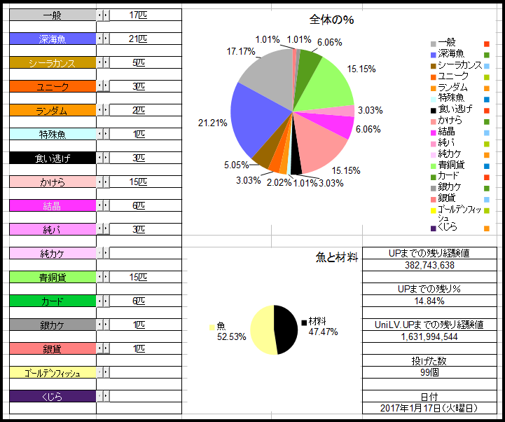 ランダム3000匹目は銀カケ25個でした、まぁ美味しいかな?