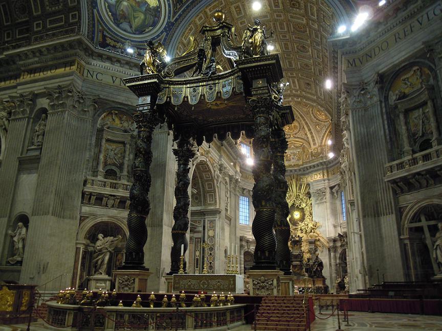 大聖堂の中央にはベルニーニ作「大天蓋(パルダッキーノ)」が。