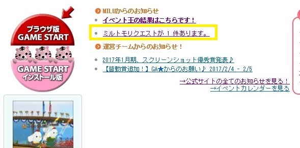 ミルトモリクエスト(黄色の枠内)が来ているようで・・・
