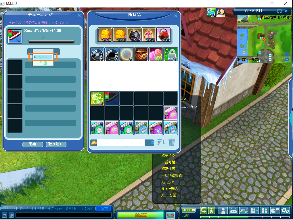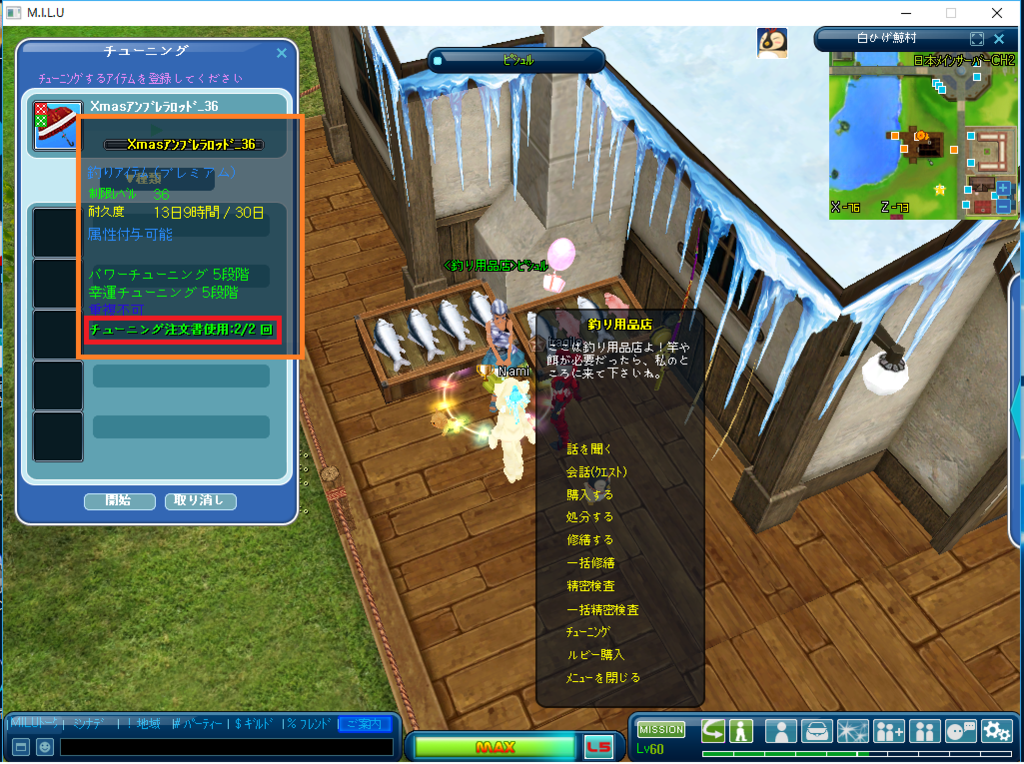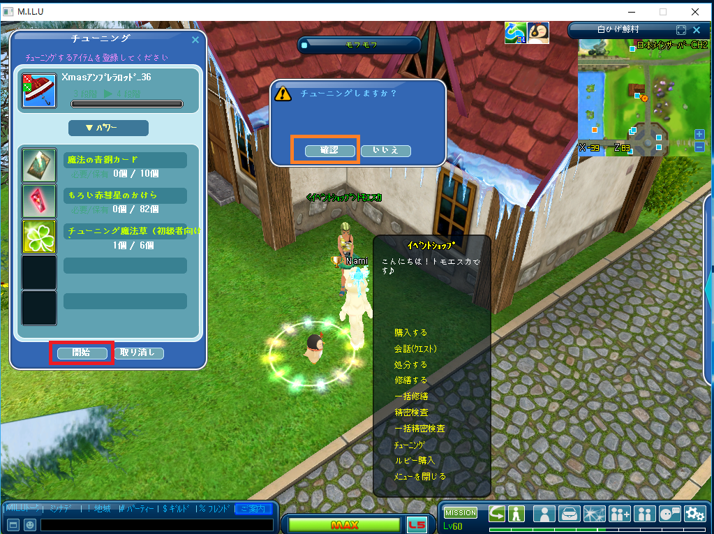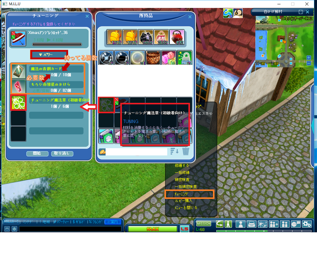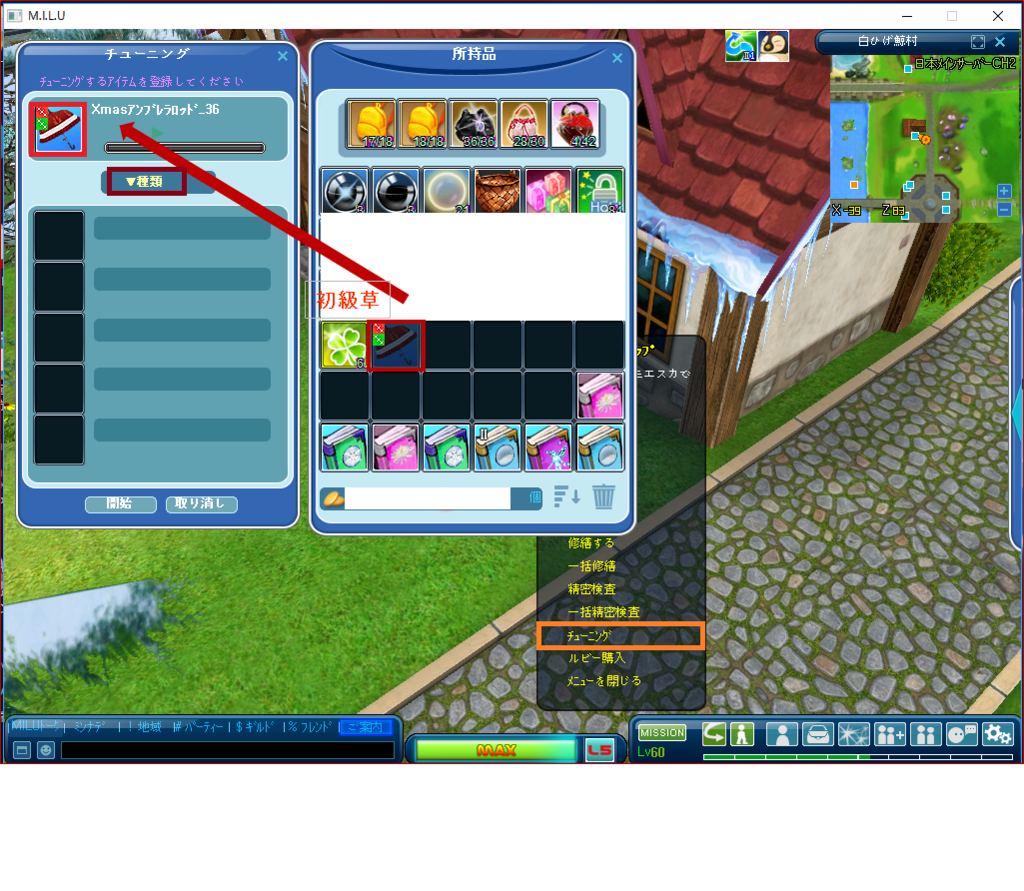 ⇒チューニング(オレンジの囲み)をクリ