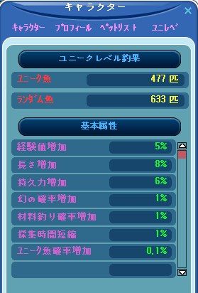 ユニークLVが11になりました。