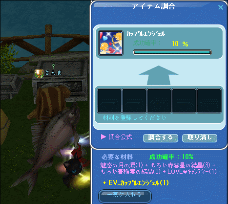 イベ釣りデイリーミッションで、EV_カップルエンジェルな羽が、初めて出て・・メモリーに飛んだw