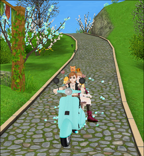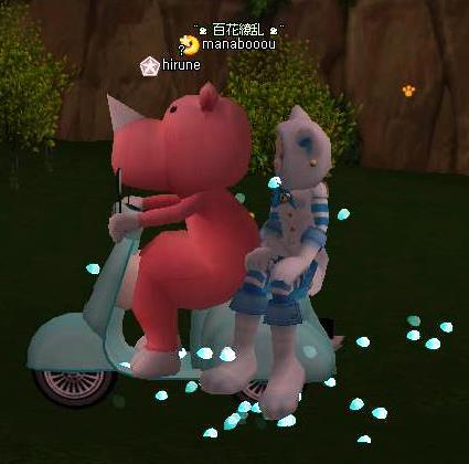 ウイリーだってできるんだよっ!(´vωv`*)そういえば・・男性アバタが後ろに乗ると・・・面白いってので・・・