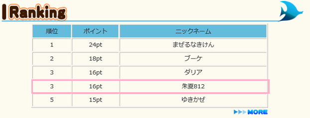 (´-`).。oO(今月は皆勤と20P目指そう・・・・