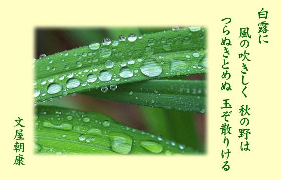 白露に風がしきりに吹き付けている秋の野のさまは