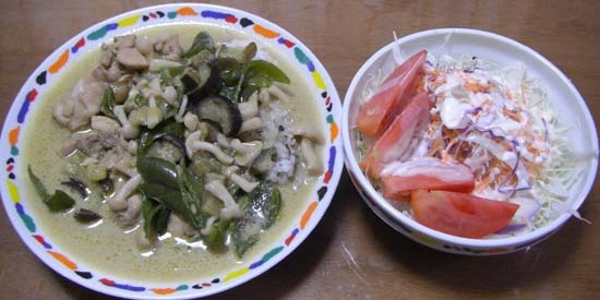 グリーンカレーとサラダでした