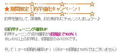 ところで、今週のメンテまで竿強化確率UPとなっているようです。