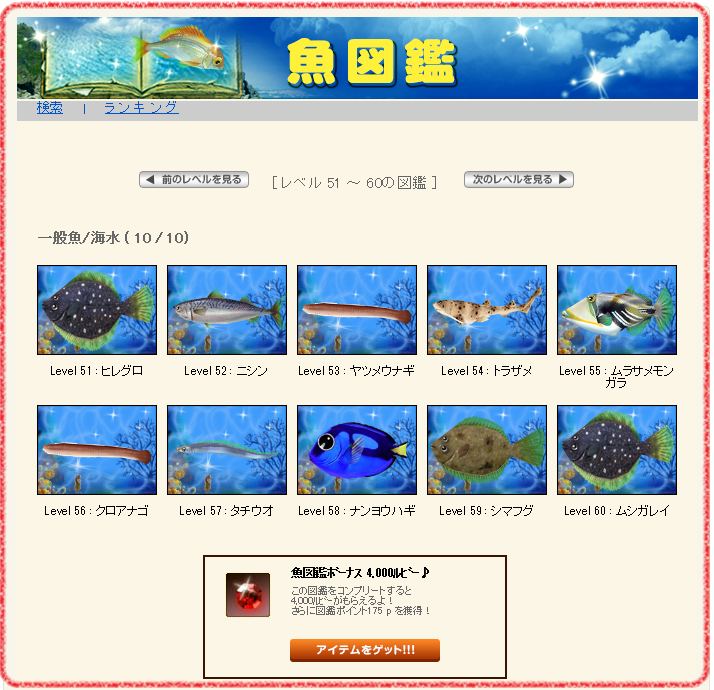 初めて魚図鑑で4000ルビーGET!!!( v ̄▽ ̄) イエーイ♪