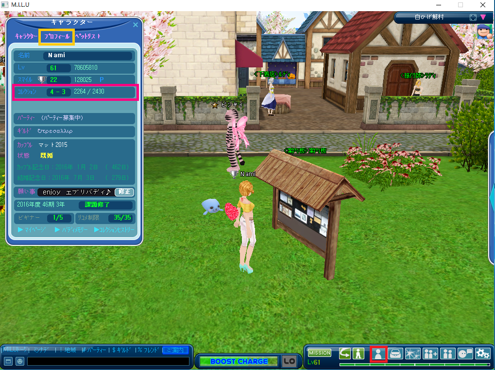 プロフィール(オレンジの囲み)をクリ