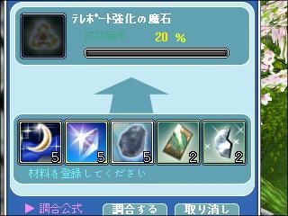 テレポート強化の魔石を作るの 20%では 材料が厳しいね |