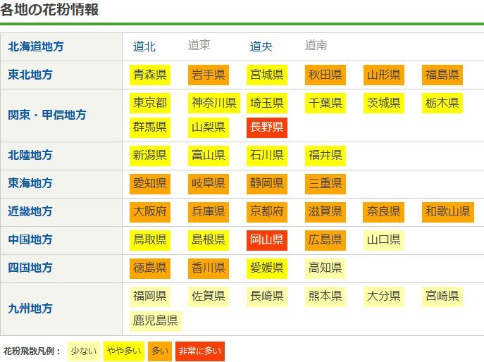 その代わりなのか長野県花粉非常に多いw