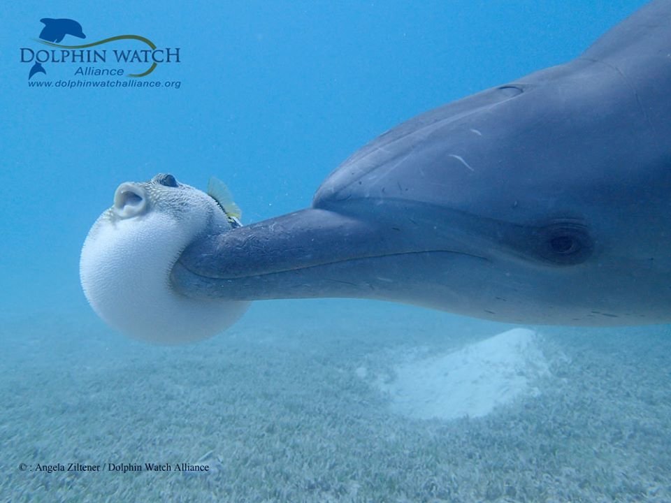 ミドリフグ?も つつかれて思わずプッハ~~♪