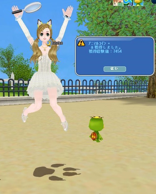 ↓ ぴょんぴょんとジャンプ&このなにが掘れたかの表示出る前に 地面をクリック!