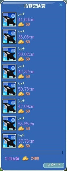 イベ魚30匹釣る → マリーン(パープル)シャチ1匹釣る