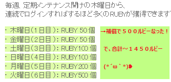 そう言えば 木曜にこなくて500ルビーの補償をいただいた↓
