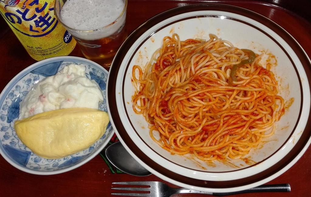 ① ママースパゲリーナポリタン(大盛り) ② ミニツナオムレツ+ポテトサラダ