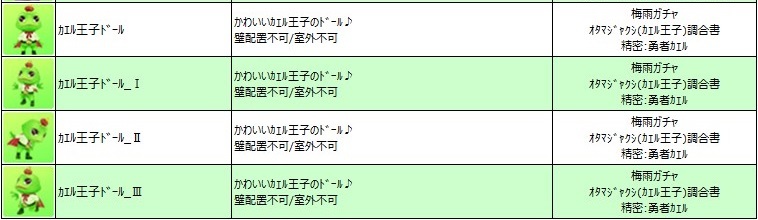 場所はメモリー横・スタスク前の橋・レイシ下・セシリア時短PP付近・ヒトデ海岸付近・ニューロン下あたりにでた
