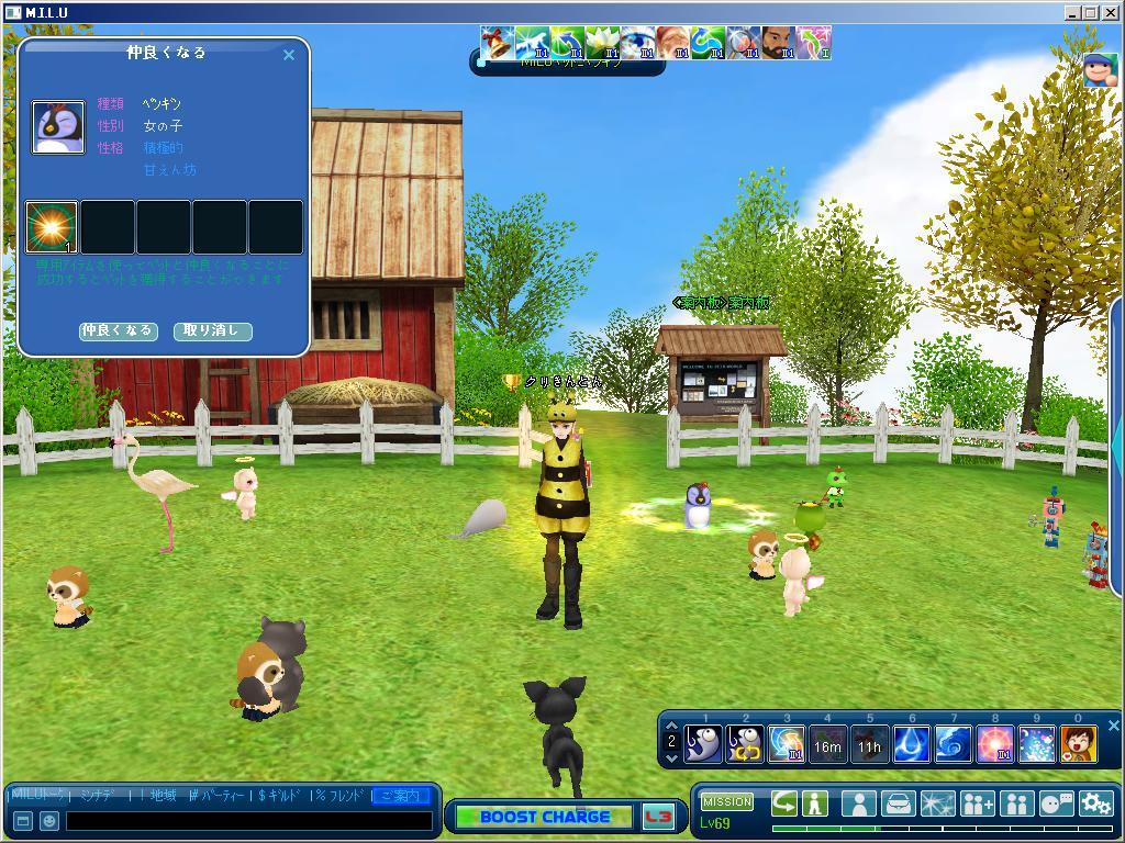 ビギのため、ペットと仲良くなりに来ました。お友達の素50%一発で2個ゲット!どの子がいいのかなーー??? 女の子なら女の子がイイのかな?ペンギンちゃんにしました。無欲の勝利!かな、1回で仲良くなれました^^