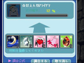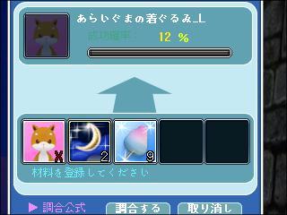 アライクマ着ぐるみと同じ12%なのに、なぜかコッチは両方2回で成功(-ω☆)キラリ