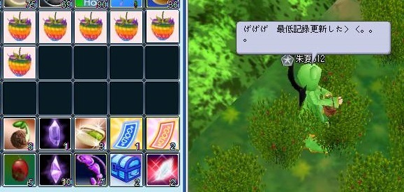 所持品も ガッツリ開けて7色果実スペース確保したのにΩ\ζ°)チーン