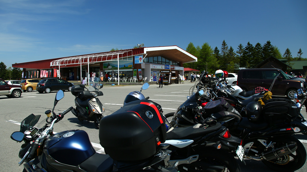 ツーリングに来ているバイク多数。
