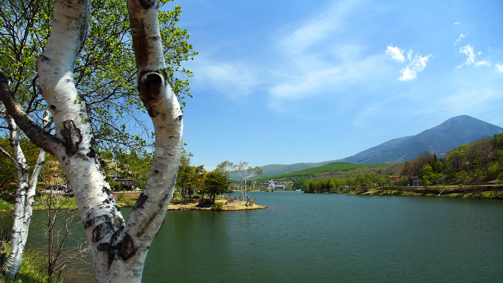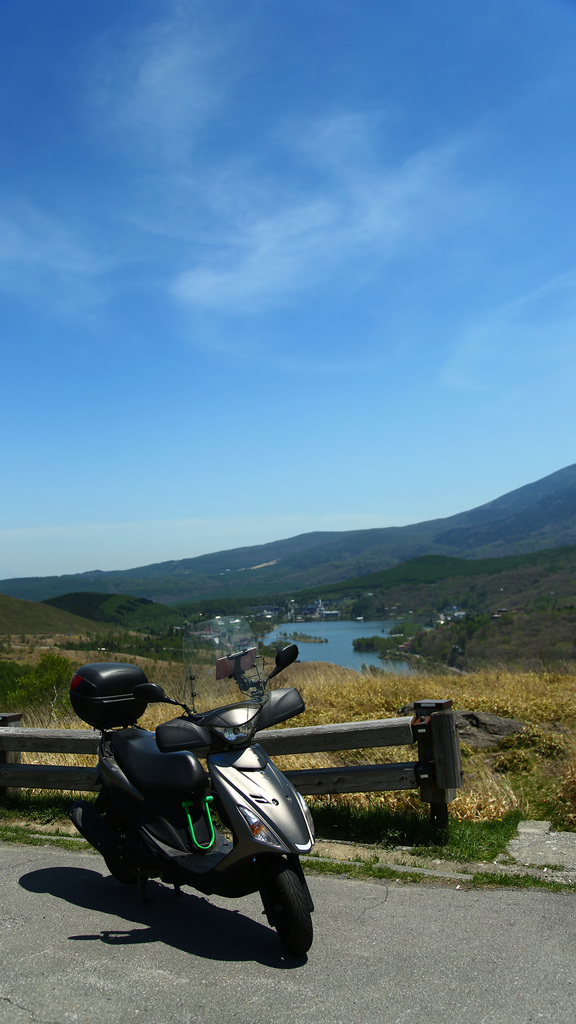 ビーナスラインを下ってきて、白樺湖が見えてきた。