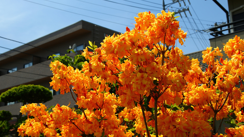 つつじに近い種類の花に見えるんだけど、こんな鮮やかなオレンジのがあるのだな。