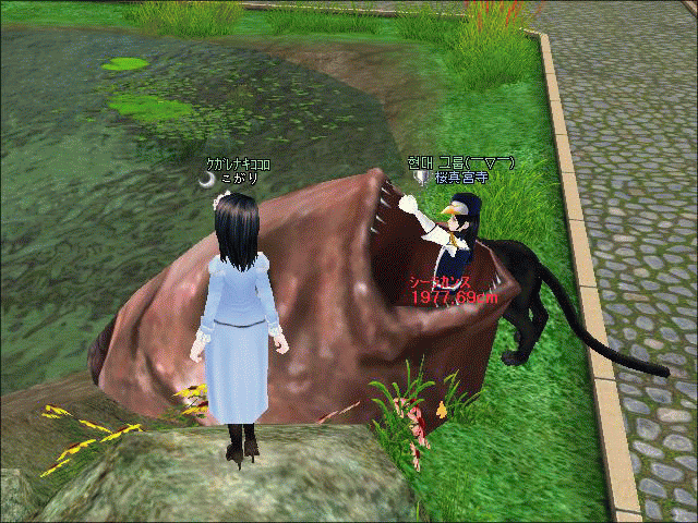 魚を持った状態ではわんこ(?)の横に立ってたのに、