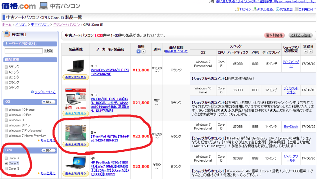 ↑の様にCPUを最新の物より一つ下げて妥協すれば掘り出し物が結構見つかったりしますね。