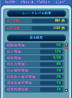 ユニークLVが16になりました。