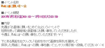 [メンバーイベント]「 『MILU』に願いを~☆ 」 |
