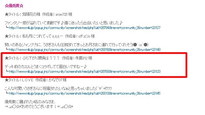 しまった!上の方のSSばかりで下の表彰するって言う内容に沿った物は無かったやテヘペロ☆(ゝω・`)ゞ