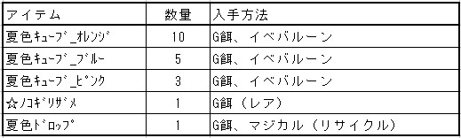 今週はコレブの入手方法の一覧を、いつもと違う方法で作ったけど