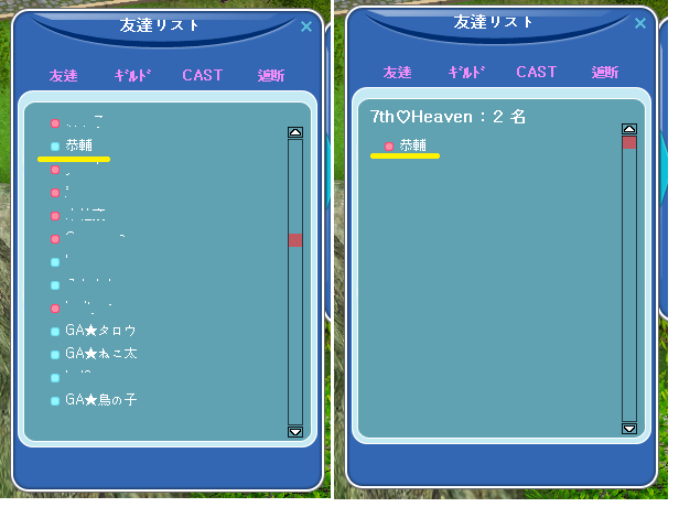 フレリストの友達タブだと男性なのに