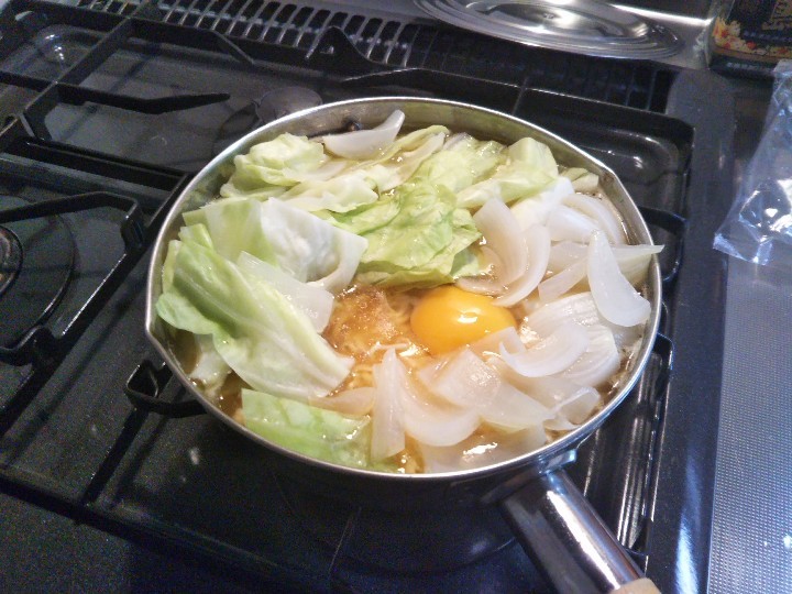 コンロからテーブルには持っていったけど鍋のまま食べたラーメン