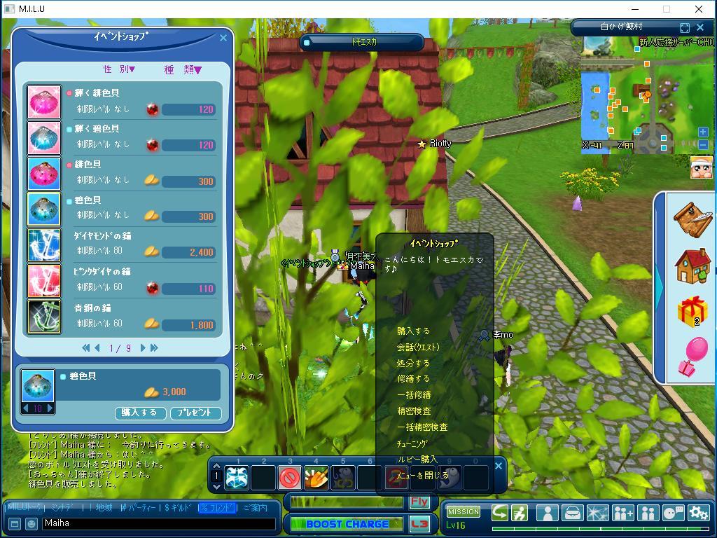このクエストは初めてだったので、間違えて女性専用の緋色貝を購入