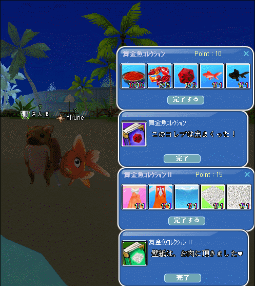 金魚で金魚・・耐久切れる前に、撮っておいたw喰われているようにしか・・見えなかったり・・・w金魚ダンス・・金魚コスない時に撮ってあったw陸金魚は、人型?だと・・・こうなるねw今週のコレブは、この2種類完成できました♪お肉は、古代魚コレブも完成v(。`・∀・。)vィェィ♪ メンテ明けも(*´∇`)ノ ヨロシクネ~♪