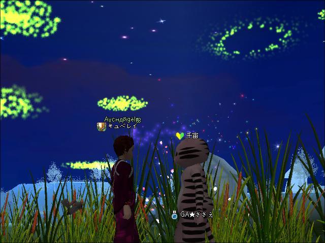 で、親娘で花火見物。 お互い落ちまくりでしたけどねww。