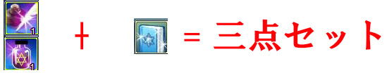 三点セットに、追加で『月の涙×20』、『魔法の青銅カード×2』が必要でした。