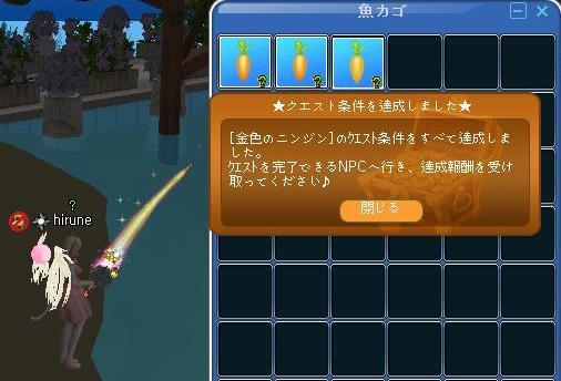 新しいイベは、お月見でしたね!クエは、メモリーから始まりましたそして、ホースバディ・・トモエスカ・・餌買って、30釣り(ここで、金の人参2個釣れる・・・その後、金の人参1個釣れ!キチャッタw