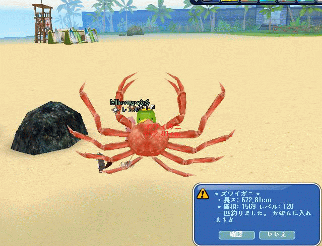 今夜は100にUpしようとEXPの調整してたら装備落としすぎでこんな小さなカニを釣り上げちゃったカイロです