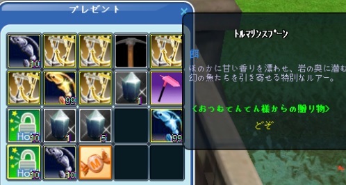 毎日ログインすると必ず、おつむてんてん様からトルマリンスプーンが届きますw
