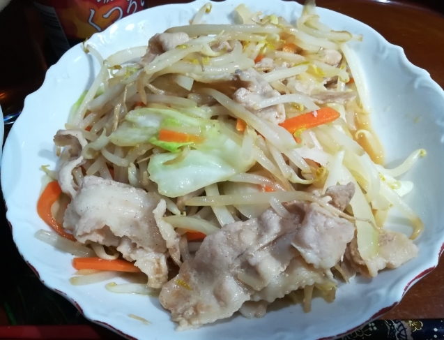 ① 豚バラ肉野菜炒め  ② よっちゃん(カット版)