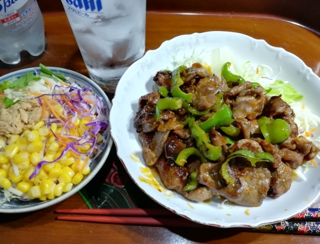 ① 牛カルビ(アメリカ産味付け肉) ② 砂コーンサラダ